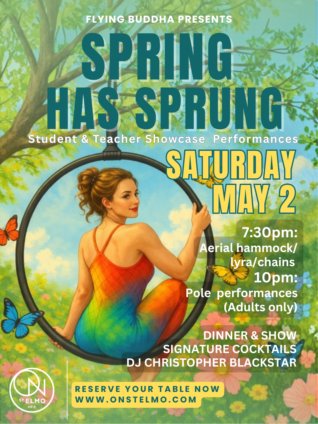 Mother nature is calling! Step into the season of love and renewal with Flying Buddha’s “Spring Has Sprung” multi-apparatus performance at ON St. Elmo!